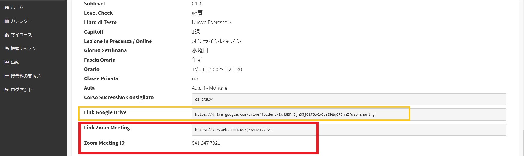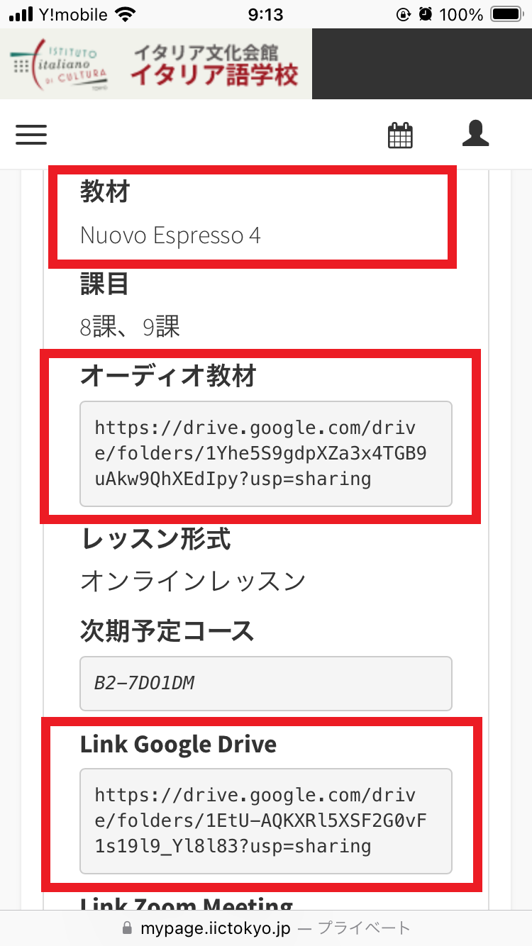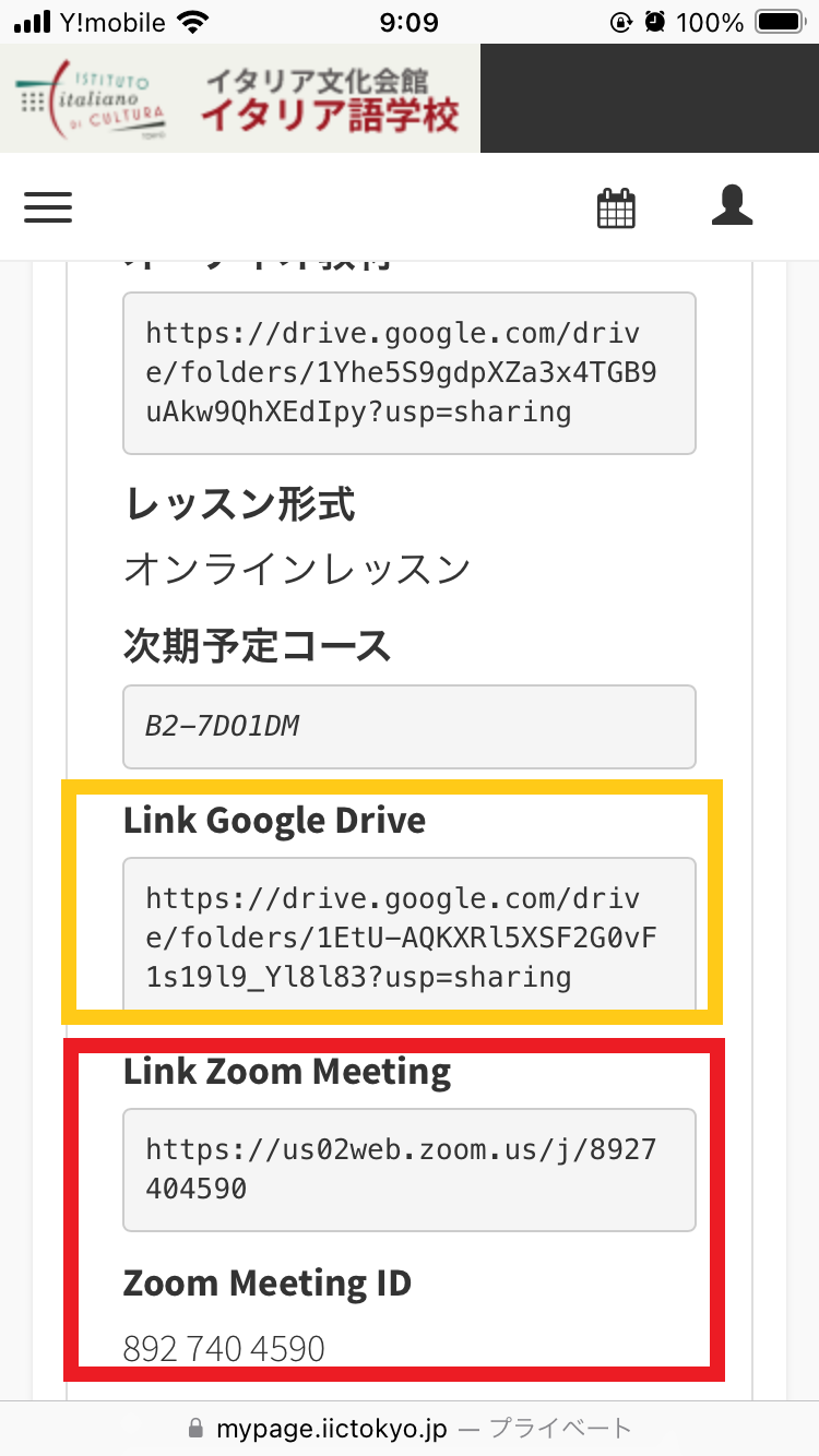 – Link Google Drive ⇒ 使用教材が「講師配布資料」と指定されている場合、あるいは講師自身が作成したオリジナルの資料を配布する場合、当校ではGoogleのクラウドサービスを使用し教材を共有しています。予めダウンロードして、印刷することもできます。