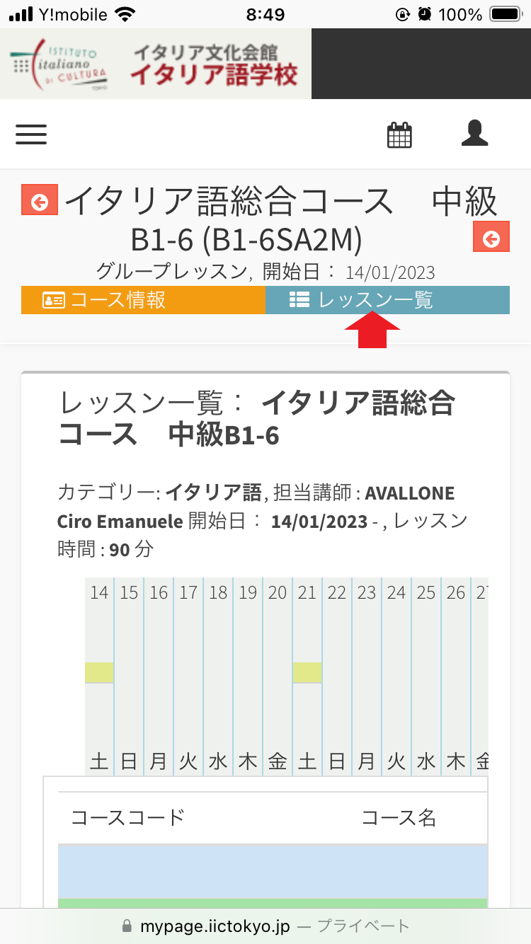 表示されたコースページで青いボタン「レッスン一覧」をクリックしてください。