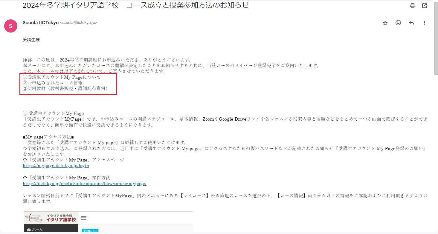 最少開講人数(3名)に達したコースのコース成立のお知らせとあわせて、下記の重要情報をお知らせいたします。